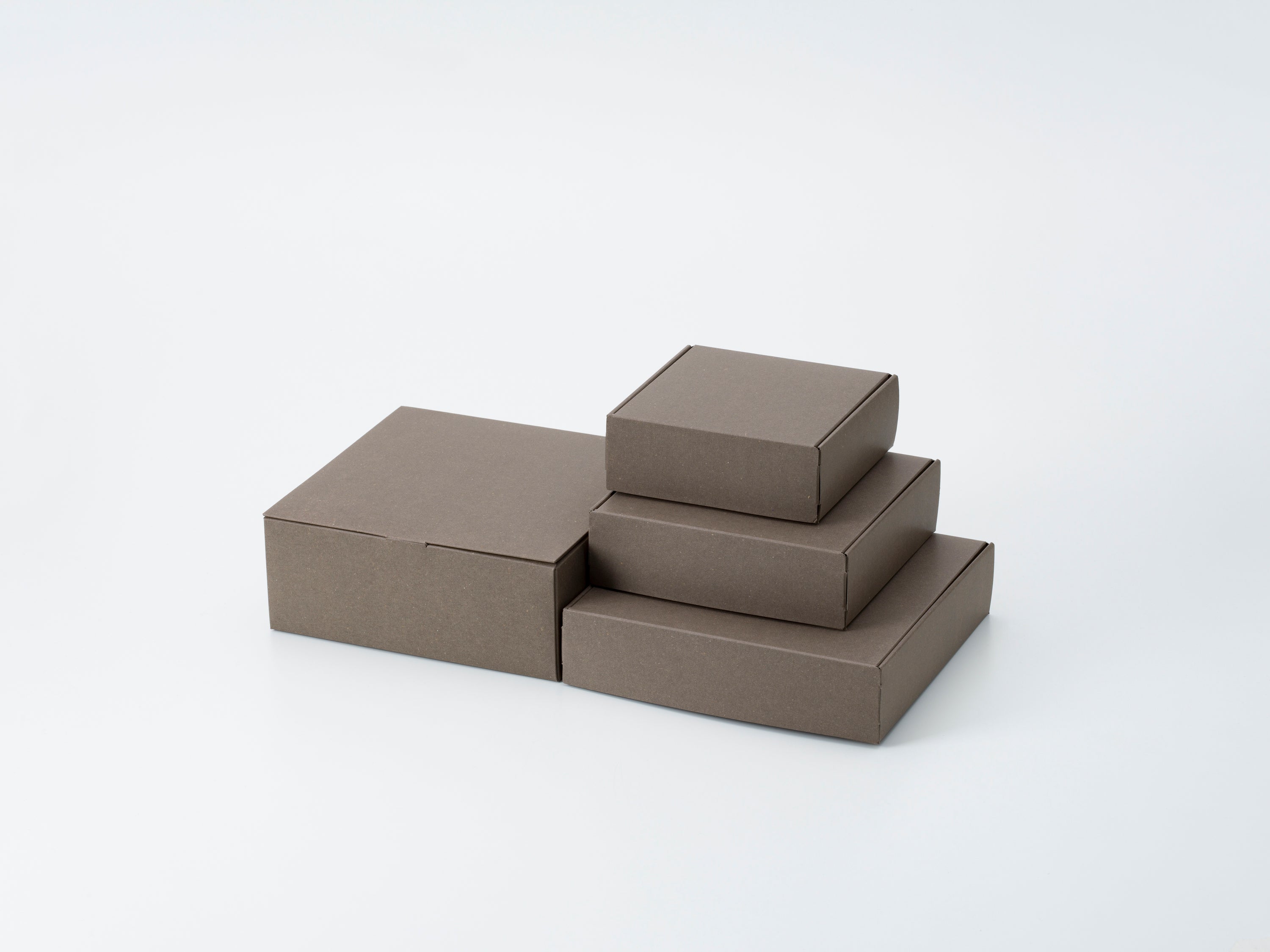 箱の素材は「エゾマツクラフト」という紙を使用しています。北海道でしか育たないエゾマツの粉末を紙に漉き込まれた、木の風合いが再現された紙です。<エゾマツクラフト(うす茶)><エゾマツクラフト(くろ茶)><ミルクラフト(ブラック)>の3つの素材からお選びいただけます